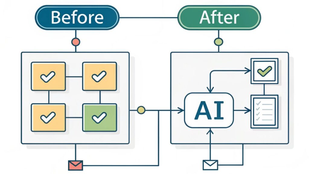 例えば、顧客対応にAIを使うならカスタマーサポート部門との連携が不可欠です。システム導入後は、「問い合わせ内容をどの段階でAIに任せるか」「AIが回答できないイレギュラーな質問をどう扱うか」などを明確にしておく必要があります。